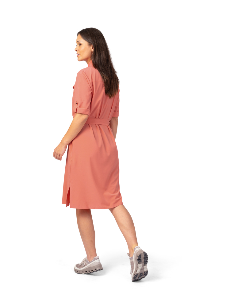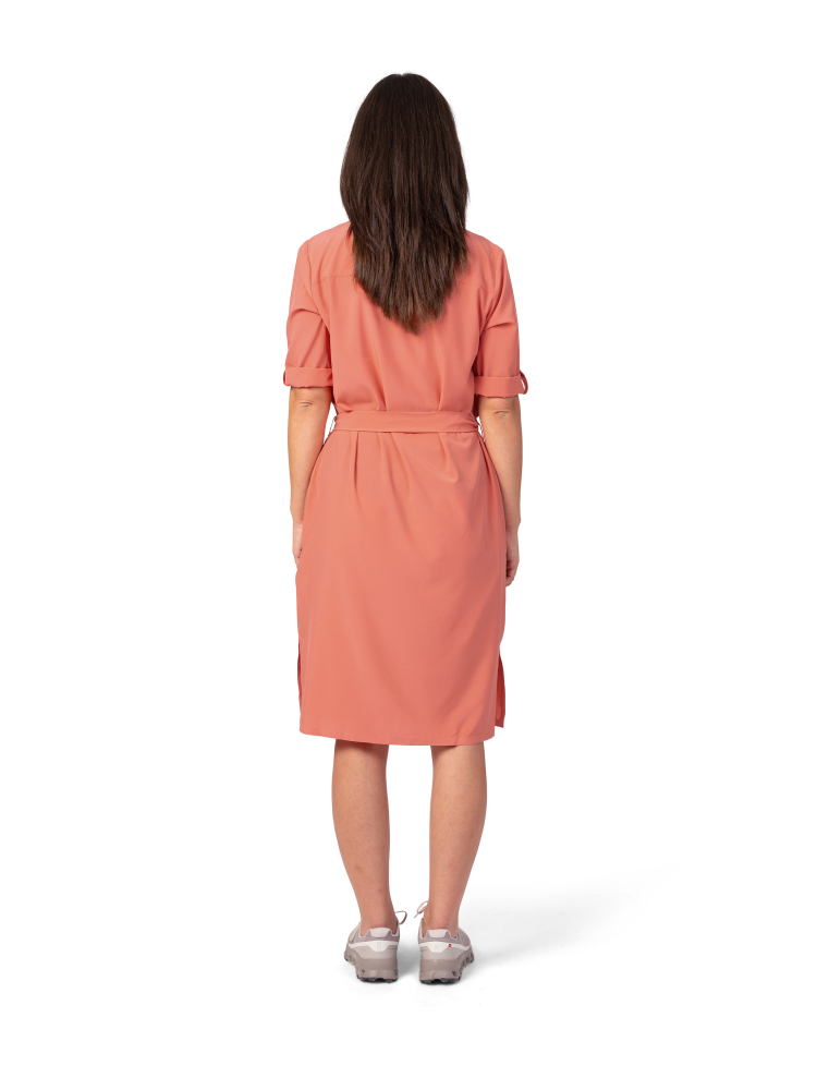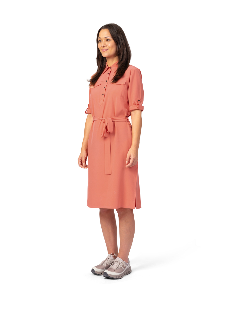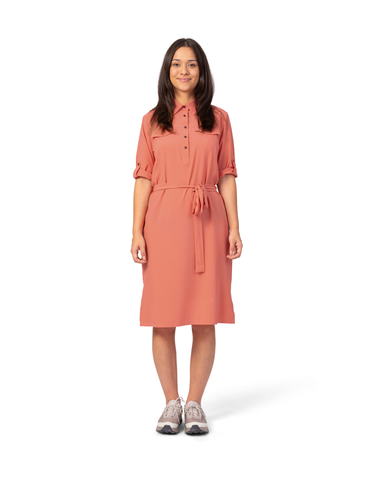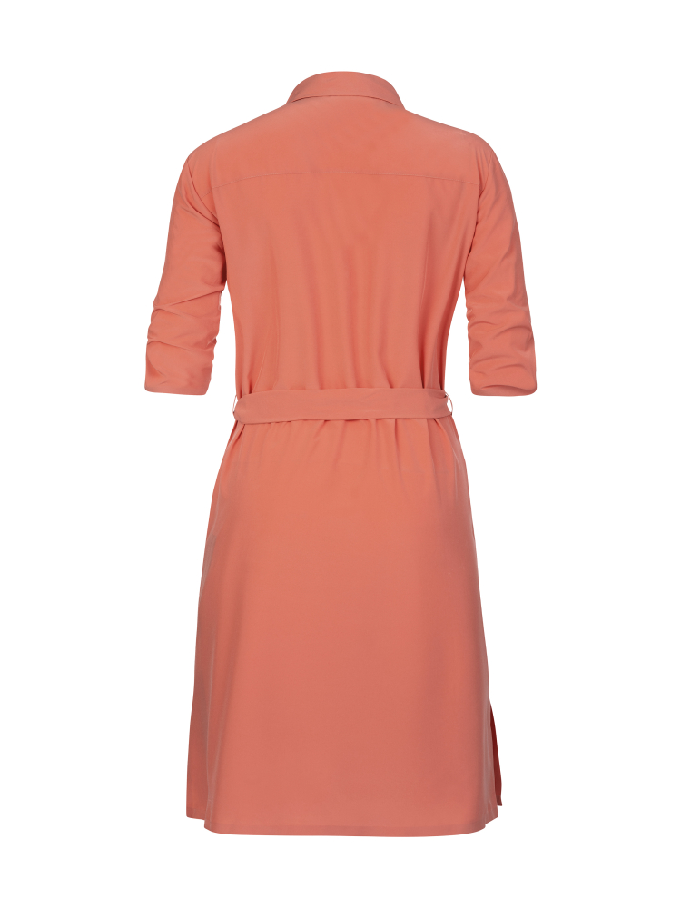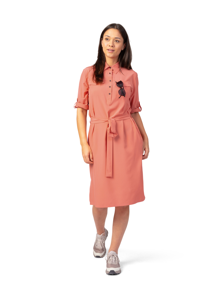 Dámské lehoučké šaty s delším rukávem jsou vyrobeny z funkčního a vysoce elastického a prodyšného materiálu AFT Stretch. Neuvěřitelně lehký, jemný a příjemný funkční elastický materiál oceníte během horkých letních dní. Elegantní košilový delší střih nad kolena s páskem v pase. Rukávy lze nosit v delším provedení či ohrnout na kratší délku a zapnout na knoflíček. Lepený dolní kraj i lem rukávů dodává šatům čistý vzhled. Jednobarevné provedení a elegantní styl v kombinaci s funkčností a pohodlím oceníte pro běžné nošení, cestování a volný čas. Antistatická úprava materiálu.