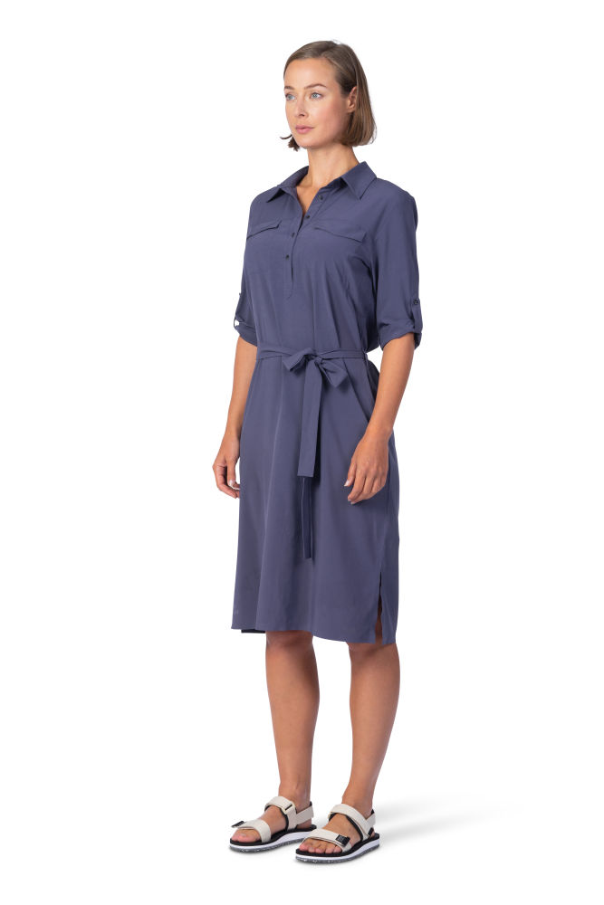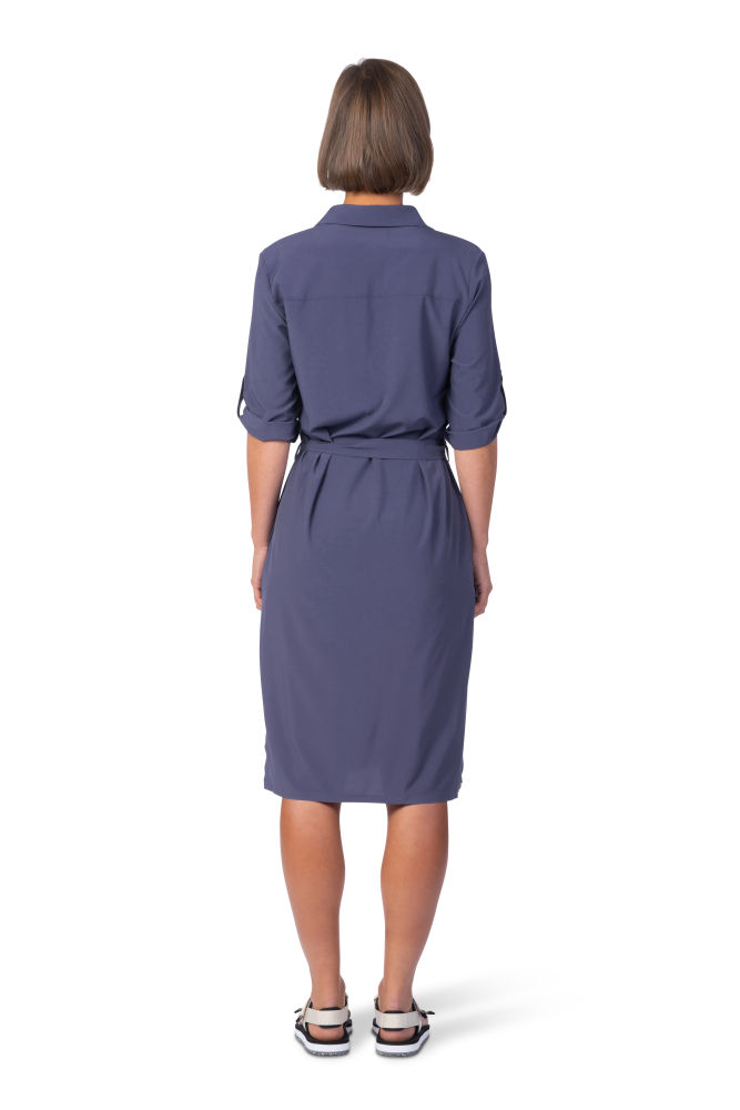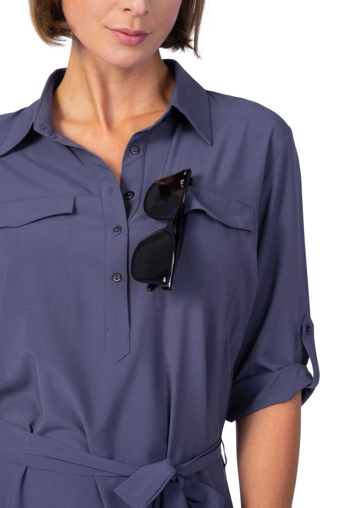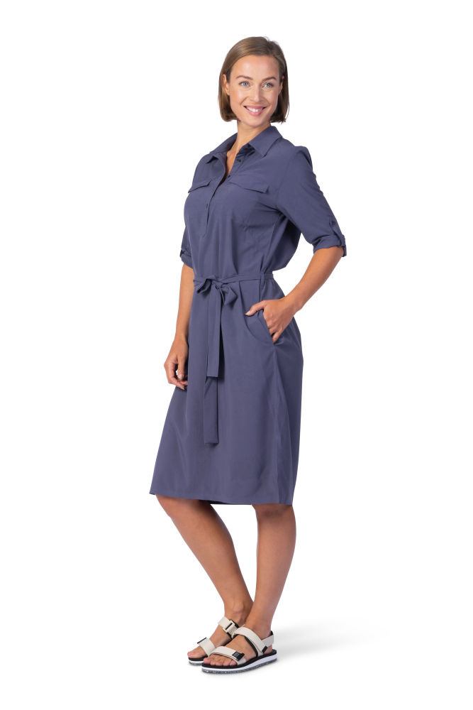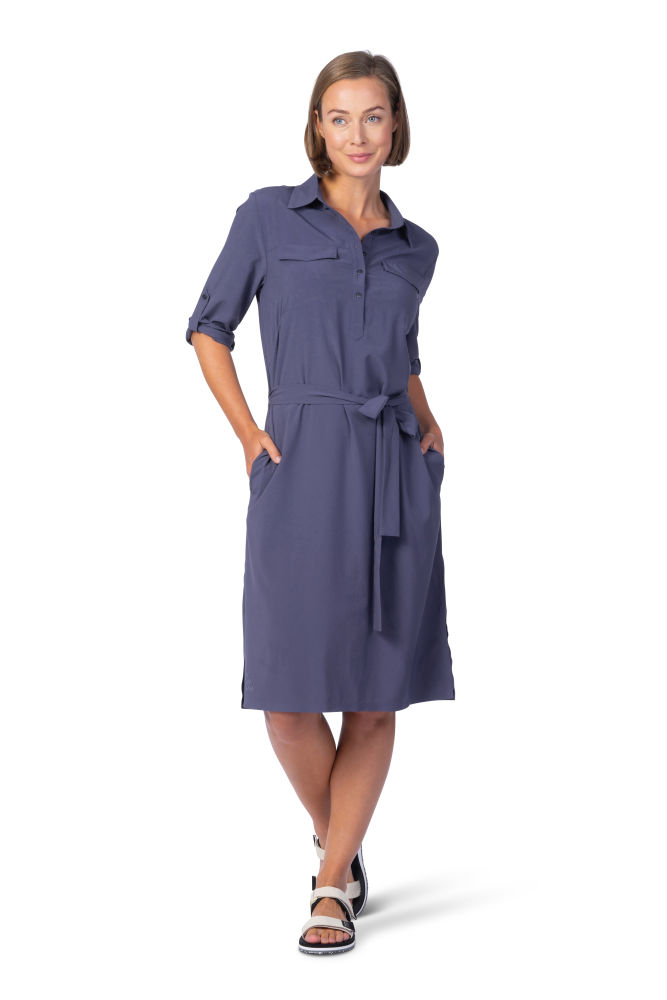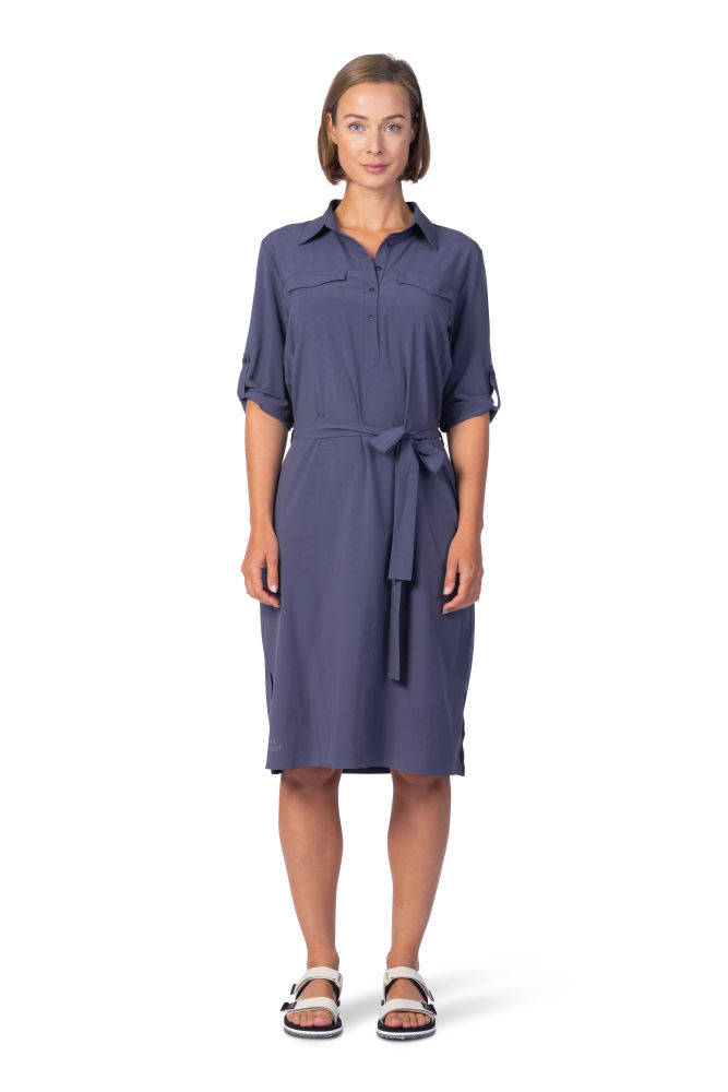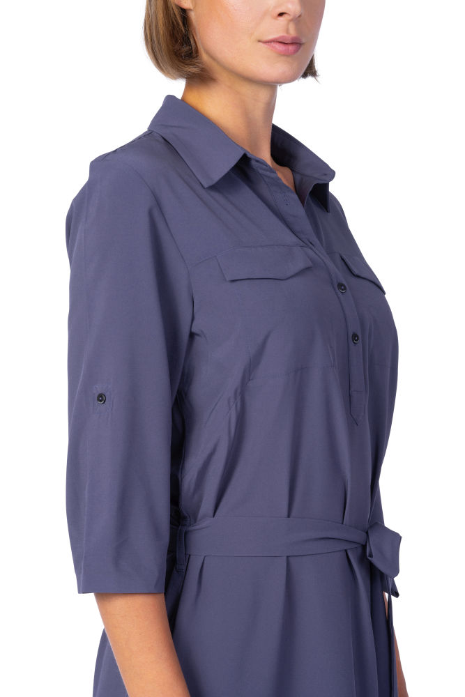 Dámské lehoučké šaty s delším rukávem jsou vyrobeny z funkčního a vysoce elastického a prodyšného materiálu AFT Stretch. Neuvěřitelně lehký, jemný a příjemný funkční elastický materiál oceníte během horkých letních dní. Elegantní košilový delší střih nad kolena s páskem v pase. Rukávy lze nosit v delším provedení či ohrnout na kratší délku a zapnout na knoflíček. Lepený dolní kraj i lem rukávů dodává šatům čistý vzhled. Jednobarevné provedení a elegantní styl v kombinaci s funkčností a pohodlím oceníte pro běžné nošení, cestování a volný čas. Antistatická úprava materiálu.