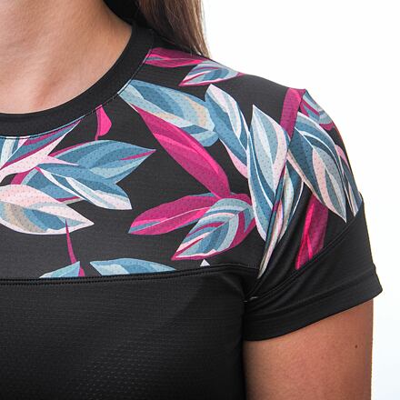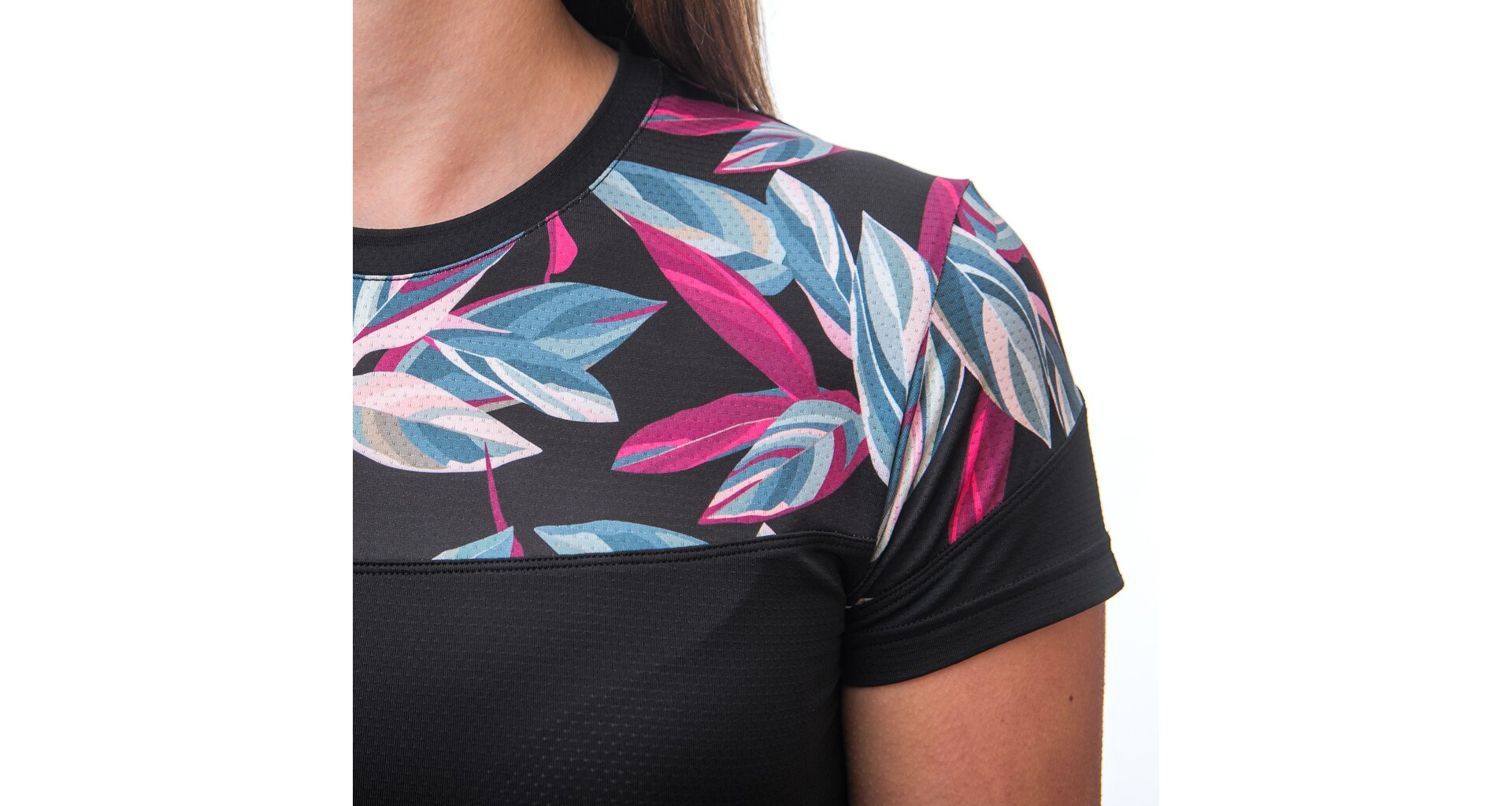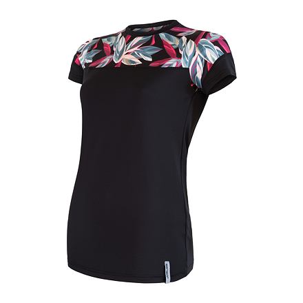 SENSOR COOLMAX IMPRESS dámské triko kr.rukáv černá/leaves