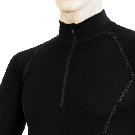 SENSOR MERINO ACTIVE pánské triko dl.rukáv stoják zip černá