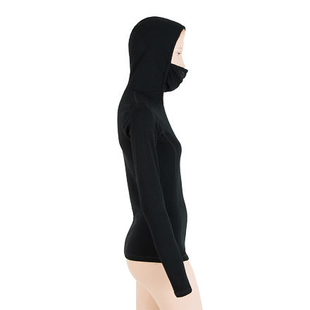 SENSOR MERINO DF dámské triko dl.rukáv s kapucí černá
