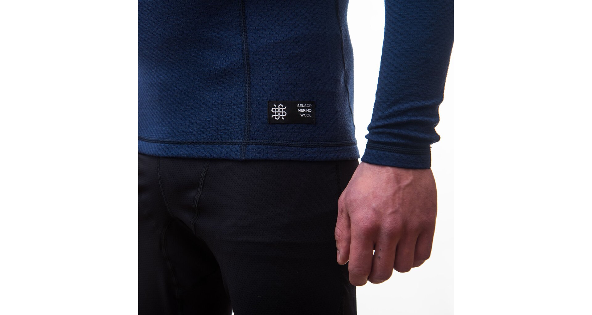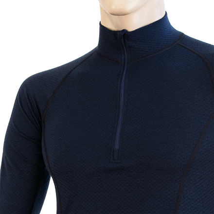 SENSOR MERINO DF pánské triko dl.rukáv zip deep blu
