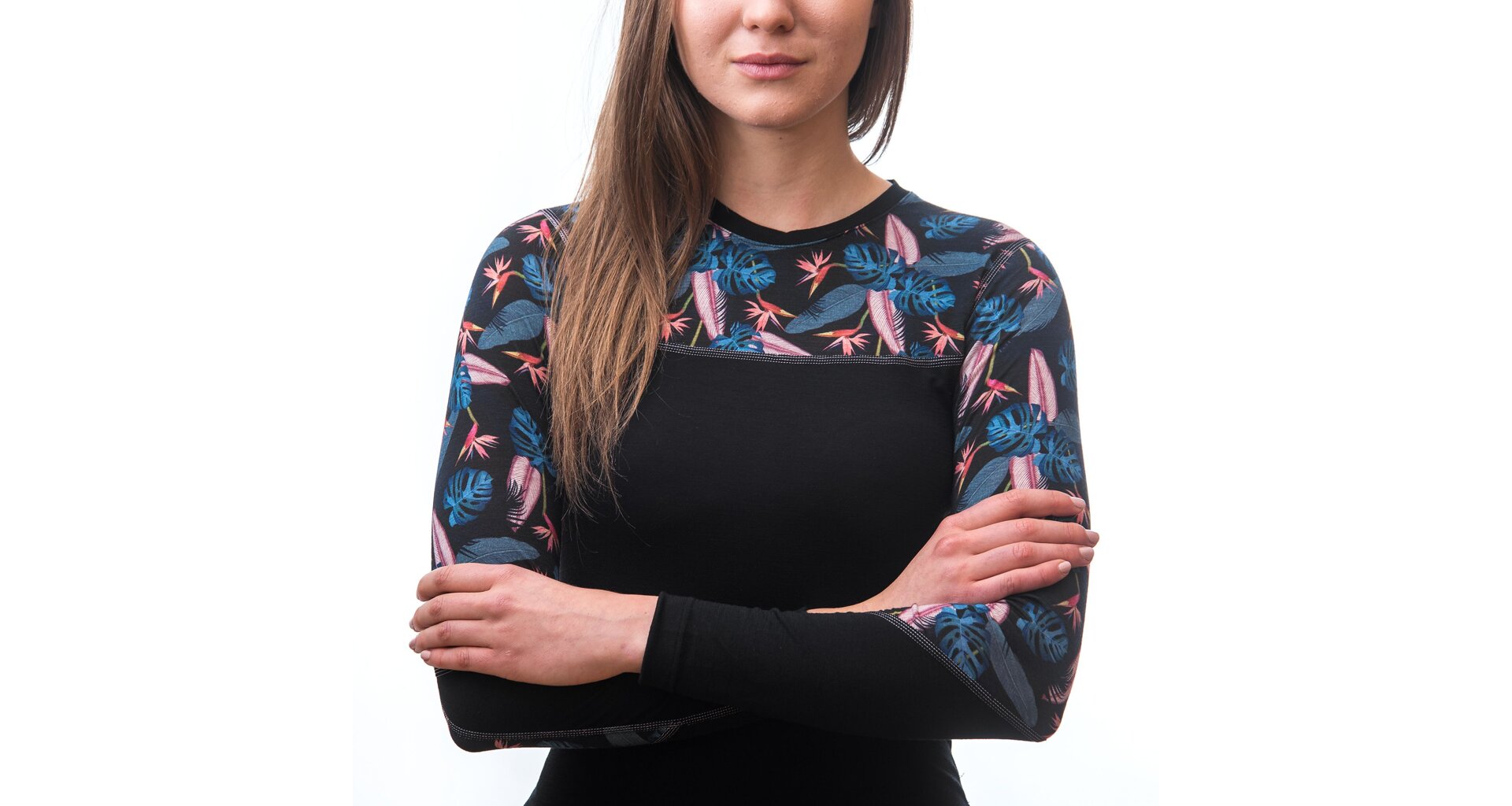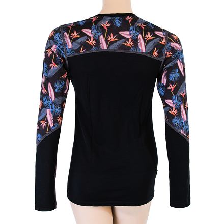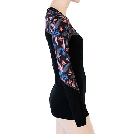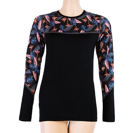 SENSOR MERINO IMPRESS dámské triko dl.rukáv černá/floral