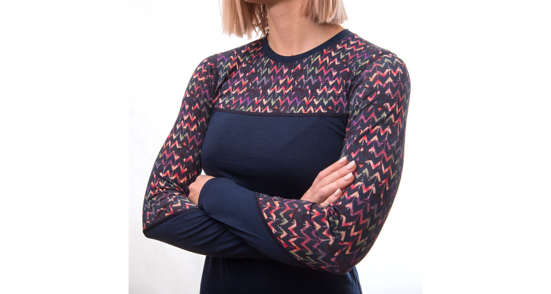 SENSOR MERINO IMPRESS dámské triko dl.rukáv deep blue/origami