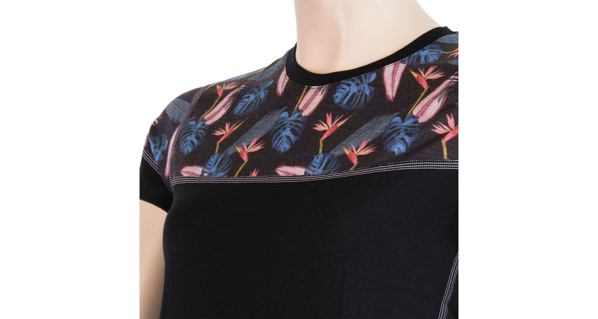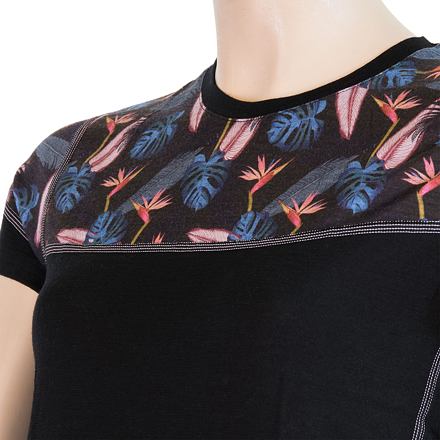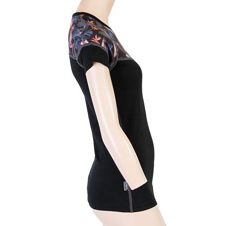 SENSOR MERINO IMPRESS dámské triko kr.rukáv černá/floral