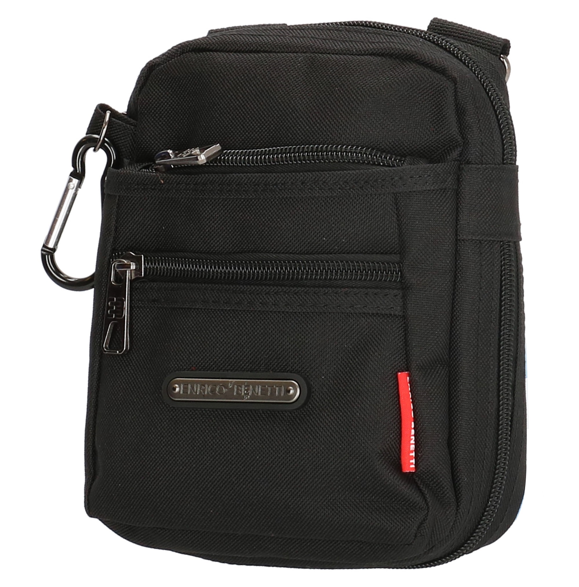 Pánská taška Enrico Benetti Garda Point je vyrobena z kvalitního polyesteru, snadného na údržbu a příjemného na nošení pro svoji hmotnost. Tato taška se liší od tašky Garda Rock pouze designem a uspořádáním. V hlavní kapse je pouze jedna síťovaná přihrádka. Dvě kapsy se zipy jsou i na čelní straně tašky, takže je dost místa skutečně pro vše. Popruh je připevněn dvěma karabinkami, což při troše fantazie nabízí spoustu způsobů jejího nošení. Navíc je vybaven i jednou volnou karabinou pro klíče, nebo jakékoliv další využití.