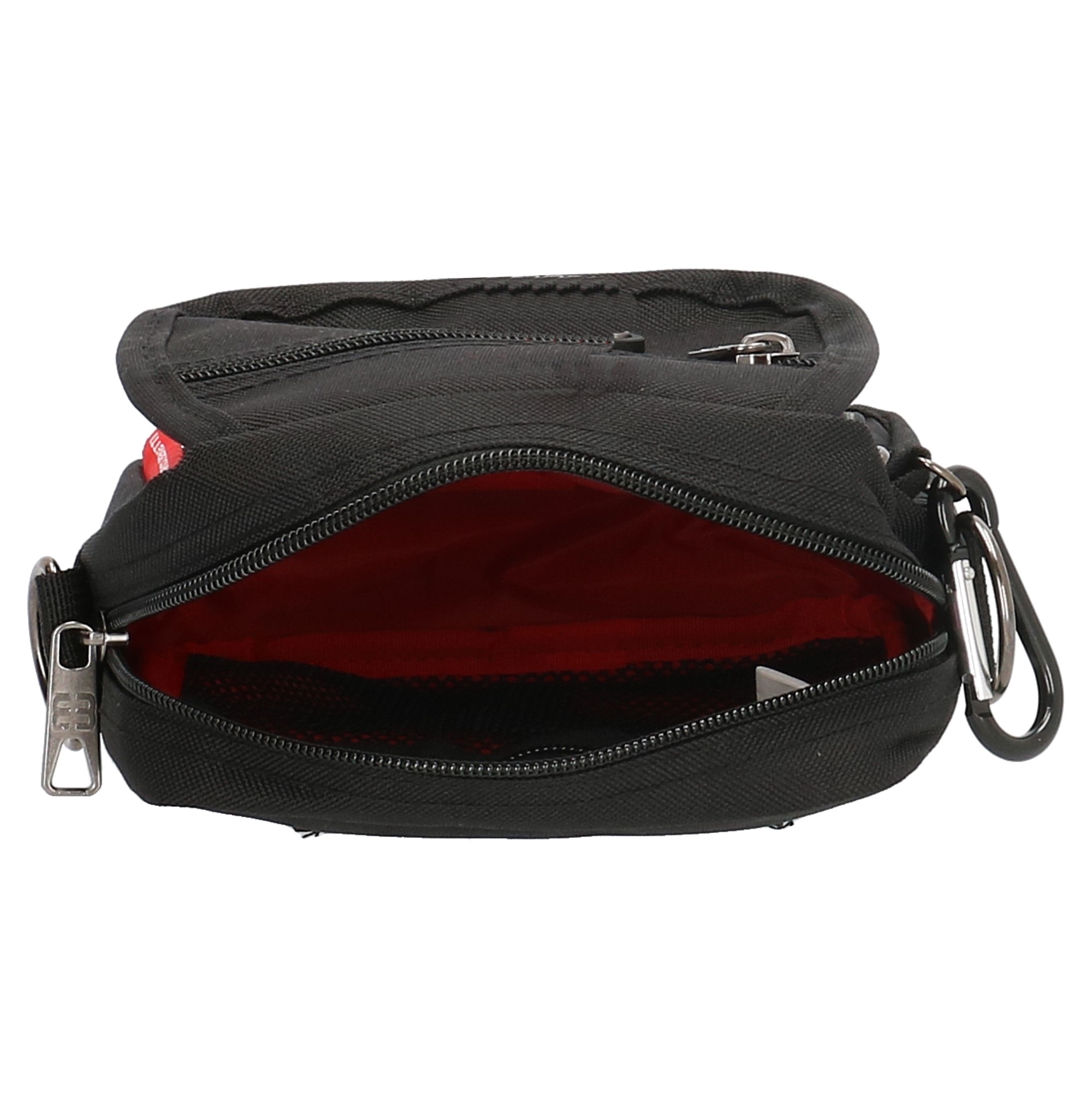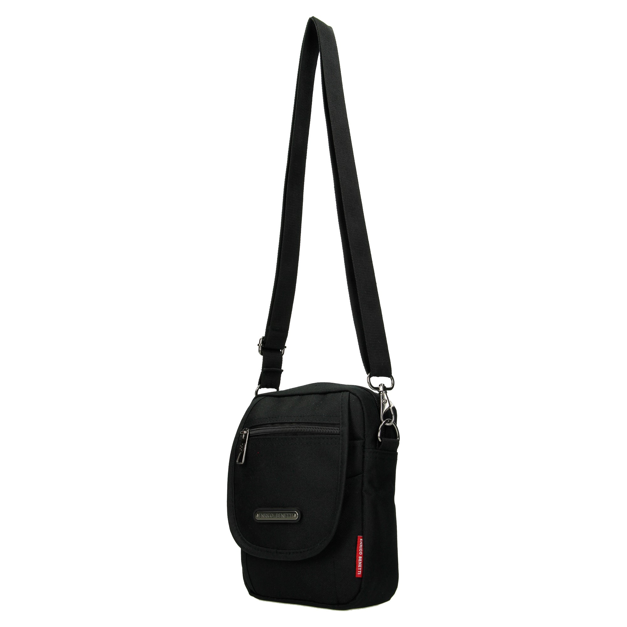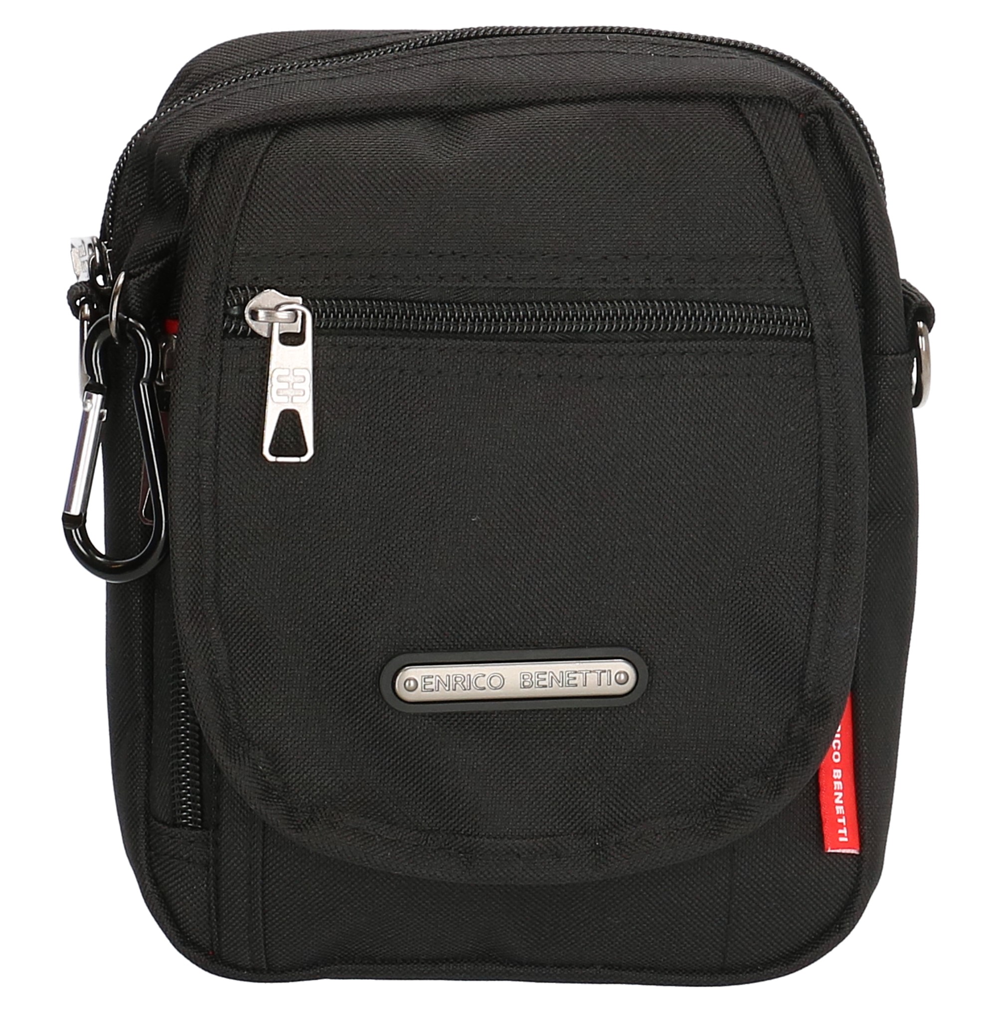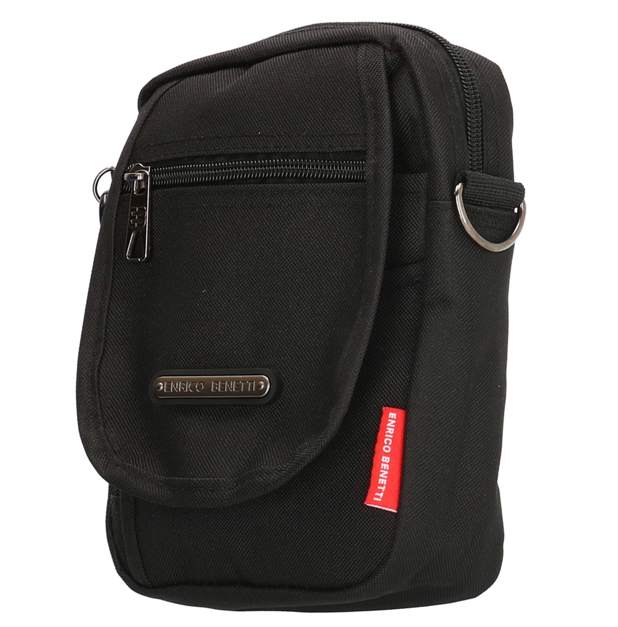 Malá sportovní pánská taštička přes rameno ze sportovní kolekce značky ENRICO BENETTI v černé barvě vyrobená z odolné textilie, kapsou uzavíratelnou zipem a nastavitelným popruhem k nošení přes rameno i křížem přes tělo. Vnitřní část pánské tašky tvoří dostatečně velká kapsa na peněženku, klíče a jiné drobnosti denní potřeby, kapsička na doklady uzavíratelná na zip a kapsička na mobil. Na přední části je kapsička také uzavíratelná na zip.