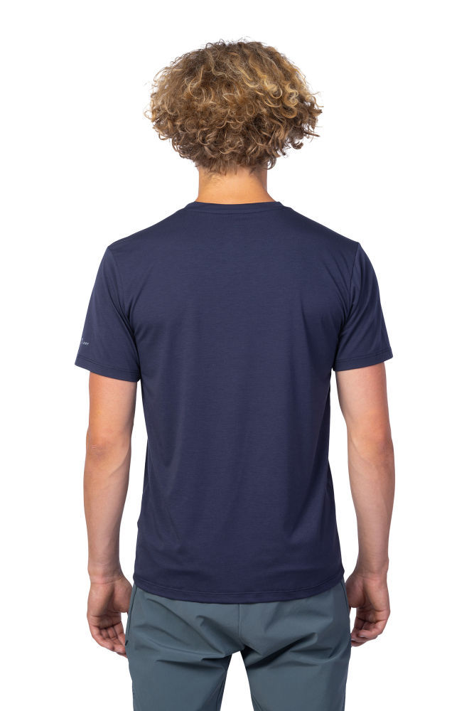 Pánské sportovní tričko z recyklovaného polyesteru. Sportovní střih trička s logo printem na hrudi bude dobře sloužit na turistiku, cyklistiku, rodinné výlety či cestování. Technologie AFT Quick Dry je mechanicky odolný materiál a zároveň prodyšný a rychleschnoucí. Materiál bude i po několika nošeních funkční a poskytne komfortní pocit při jakékoliv outdoorové aktivitě. Technologie Polygiene zajistí tričku odolnost proti zápachu a tedy umožní tričko nosit déle. Noste více, perte méně.