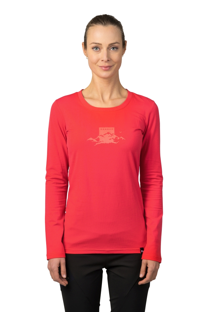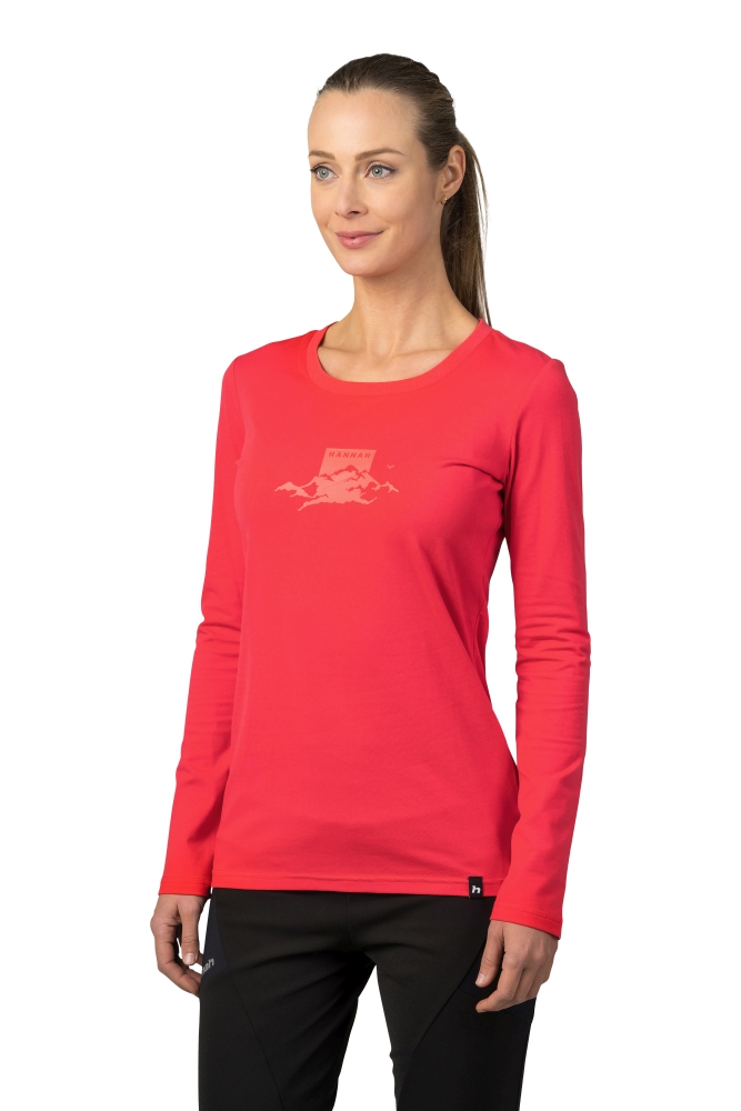 Dámské tričko Hannah Elara je vyrobené z 95 % bavlny a 5 % elastanu, má klasický výstřih a dlouhý rukáv. Regular fit střih dobře padne. Materiál je velice příjemný při styku s pokožkou a navíc má dobré termoregulační vlastnosti. Noste ho jako součást oděvu při všech aktivitách, které podnikáte venku za chladnějšího počasí. Díky nenápadnému printu na hrudi se hodí pro celodenní nošení za všech okolností a aktivitách.