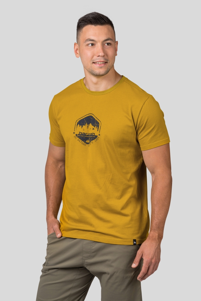 Pánské klasické triko z ECO bavlny s vyšší gramáží je velmi pohodlné i díky volnějšímu střihu Regular +. Tématický print a zemité barvy pro každého, kdo miluje výlety do přírody, či do lesa. Staň se pánem svého stylu!