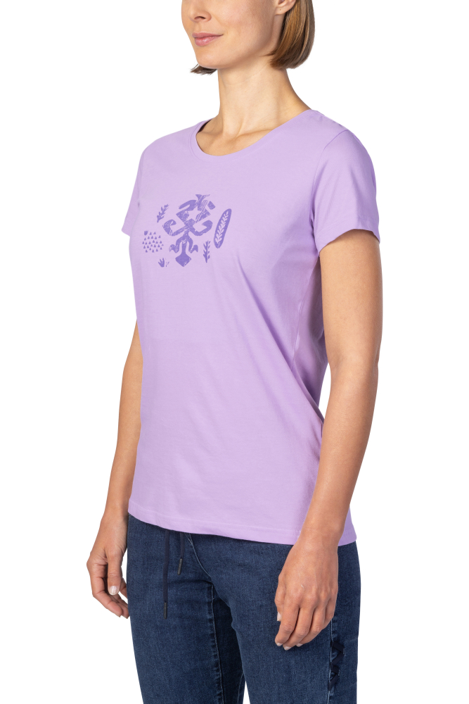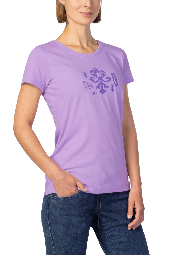 Tričko Rafiki vyrobené ze 100 % organické bavlny. Díky měkkému a pohodlnému materiálu je ideální pro každodenní nošení, zatímco lezením inspirované vzory v jasných pastelových barvách dají vyniknout Vaší kráse a ženskosti.