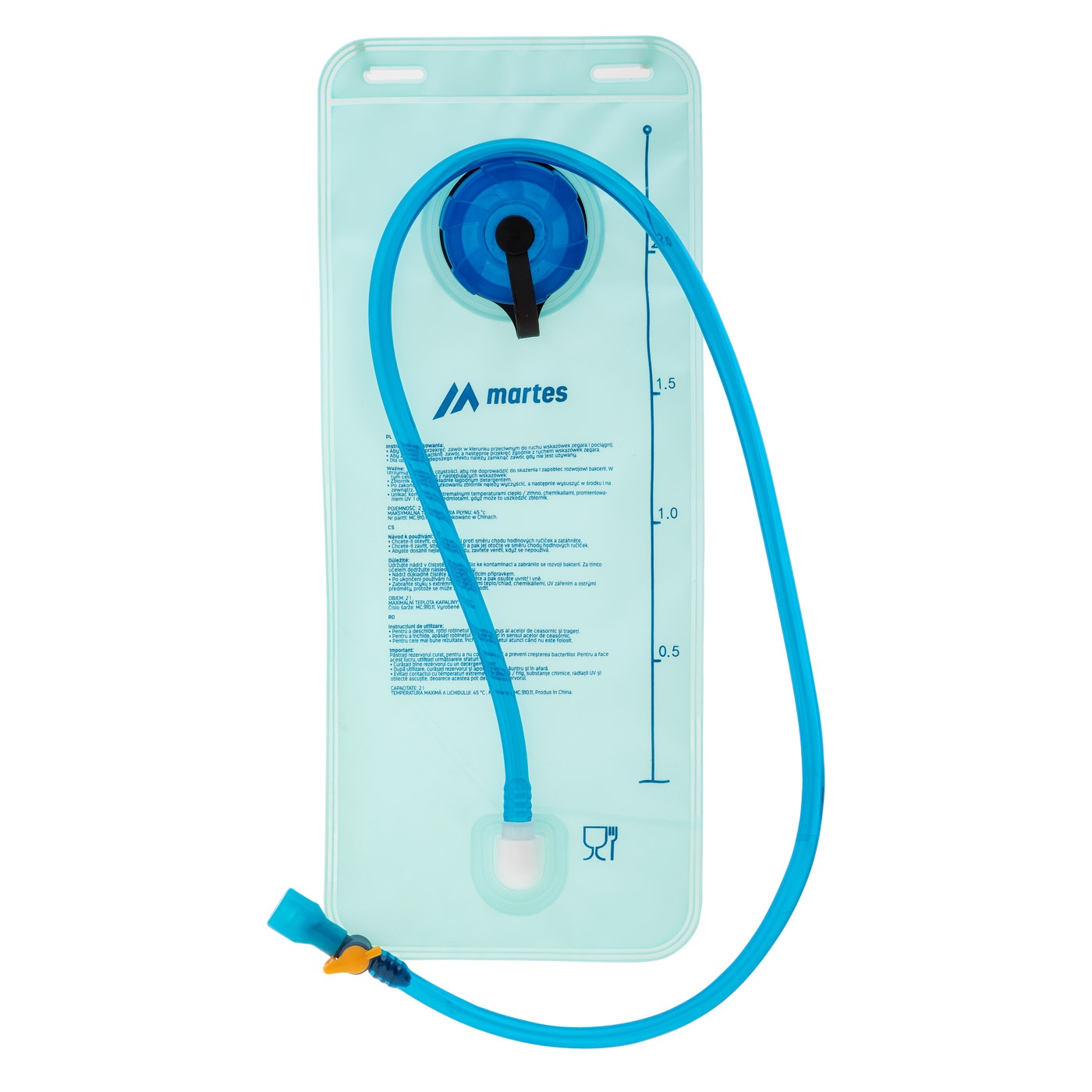Vak o objemu 2 litry pro pitný režim. Vložení do batohu, které mají uzpůsobenou kapsu s poutky na uchycení vaku a prostup na hadičku